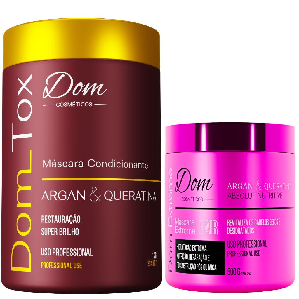Botox Capilar Dom Tox Máscara Argan e Queratina, restaura a beleza natural dos cabelos, deixando-os macios e sedosos. Promove redução de volume e alinhamento dos fios com um brilho incomparável.