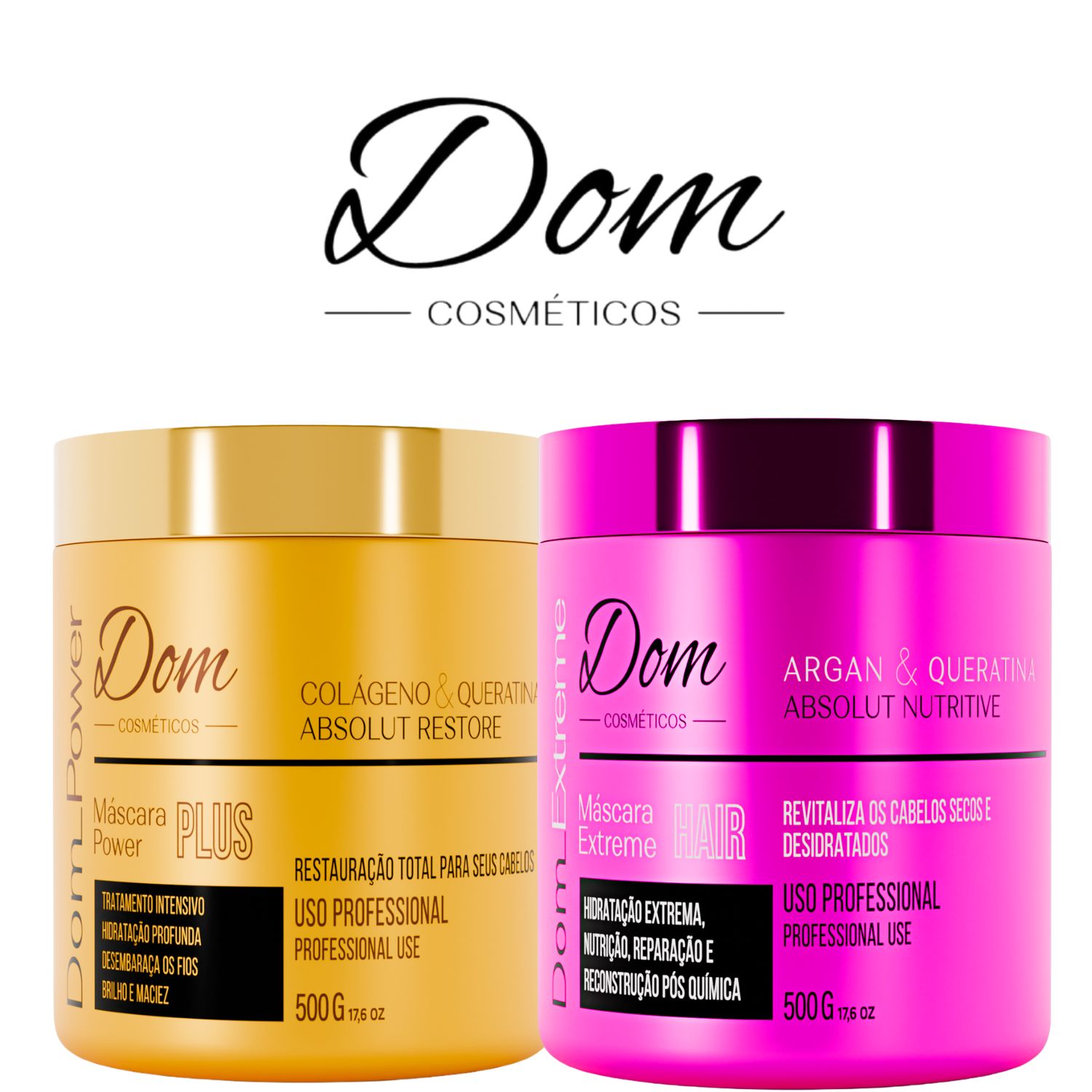 O Kit Dom é composto por duas máscaras de tratamento capilar profissional para cabelos danificados e sensibilizados, oferecendo uma solução completa de nutrição e restauração intensiva. Composto pela Máscara Power Plus e pela Máscara Extreme Hair, esse combo é ideal para fortalecer, hidratar e devolver o brilho e a maciez dos fios.