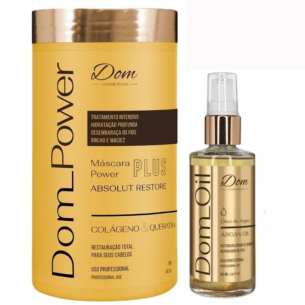 Máscara Dom Power para cabelos extremamente danificados. Repara desde o interior, desenvolvendo nutrição, brilho, maciez e proteção, com alta concentração de nutrientes, ela penetra de imediato na fibra capilar, reconstruindo instantaneamente as zonas sensibilizadas. Fornece uma suplementação elaborada a base de oleos essenciais que retém os nutrientes, protegendo e mantendo a fibra salva de novos danos.