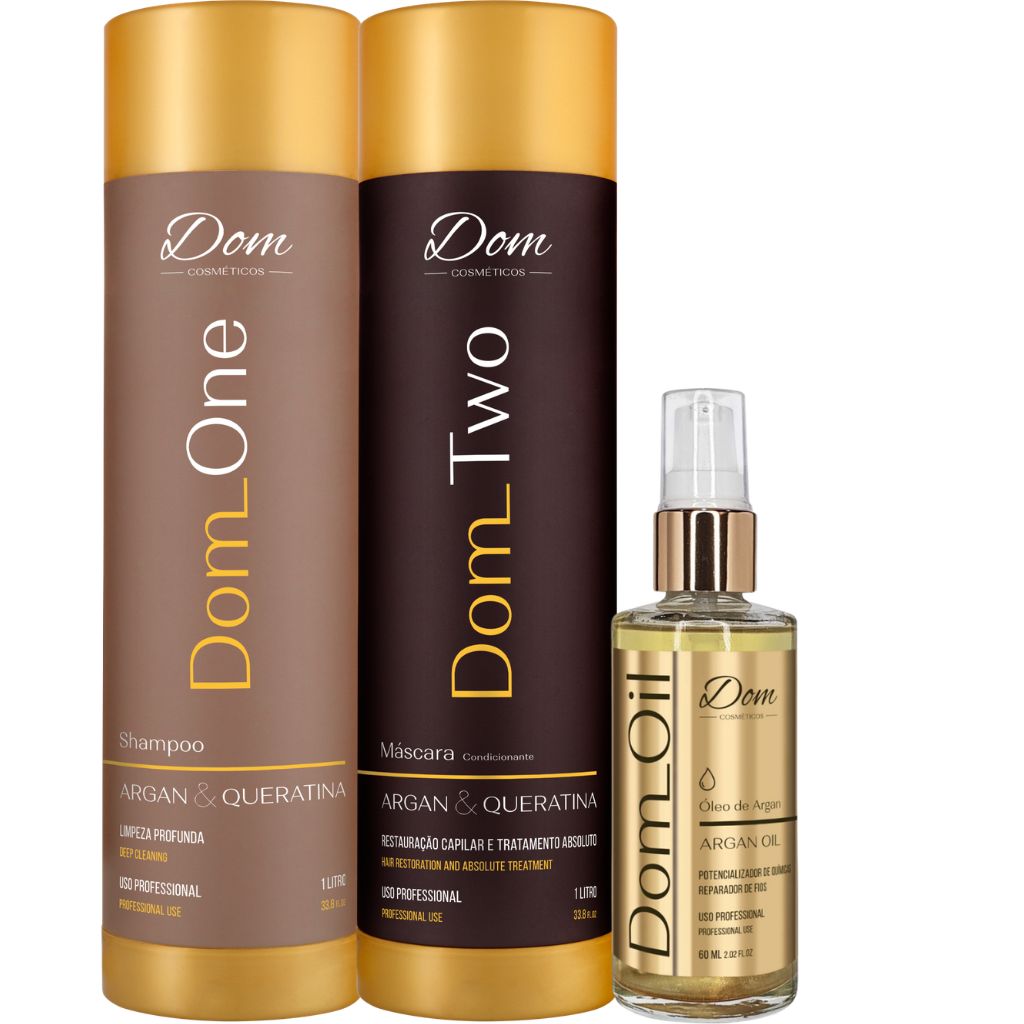 O Kit Dom One e Dom Two limpa profundamente os fios, removendo resíduos e oleosidade, e oferece alisamento intenso, duradouro e natural, com cabelos suaves e saudáveis.