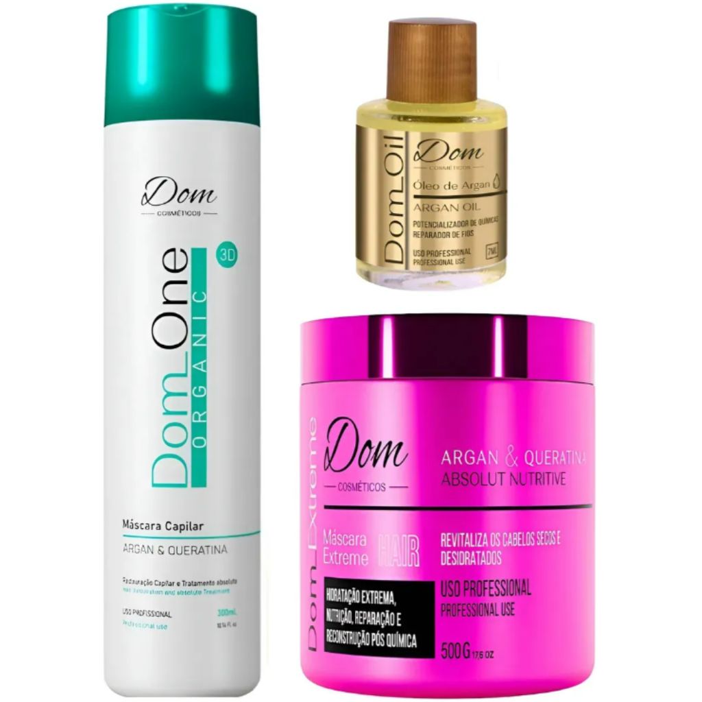 Sua Tecnologia foi desenvolvida com o exclusivo Óleo de Argan e Queratina. O tratamento Dom One conta com uma tecnologia capaz de restaurar e prevenir o envelhecimento dos fios em um só passo de aplicação, além de dispensar a pré-lavagem. Por ser orgânica não causa incômodo algum, não tem cheiro e nem arde os olhos.